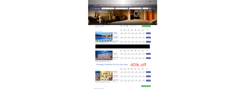 - Calendar based view across room type and meal plan showing rates and availability